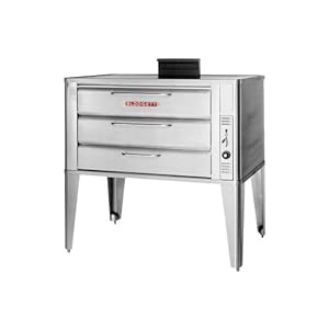 features: fahrenheit dial 200° to 500° baking compartment: 42" x 32" full angle iron frame counterbalanced door aluminized steel combustion chamber and baking compartment heavy chrome plate tubular steel door handle stainless steel front, top, sides and back additional information: width: 60" height: 57-3/4" depth: 40" weight: 715 lbs 50,000 btu/hr pan capacity: (24) 10" pie tins pan capacity: (4) 20" x 28" roast pans two-year parts/one year labor warranty five-year limited door warranty etl listed nsf approved model #: 981 single 941683